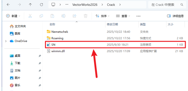 5、打开安装包解压后的【VectorWorks 2026(64bit)】文件夹,双击打开【Crack】文件夹,双击【SN】