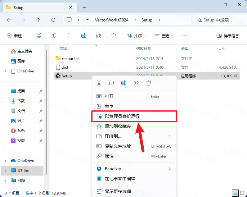 5.找到【Setup】应用程序,右键选择【以管理员身份运行】它