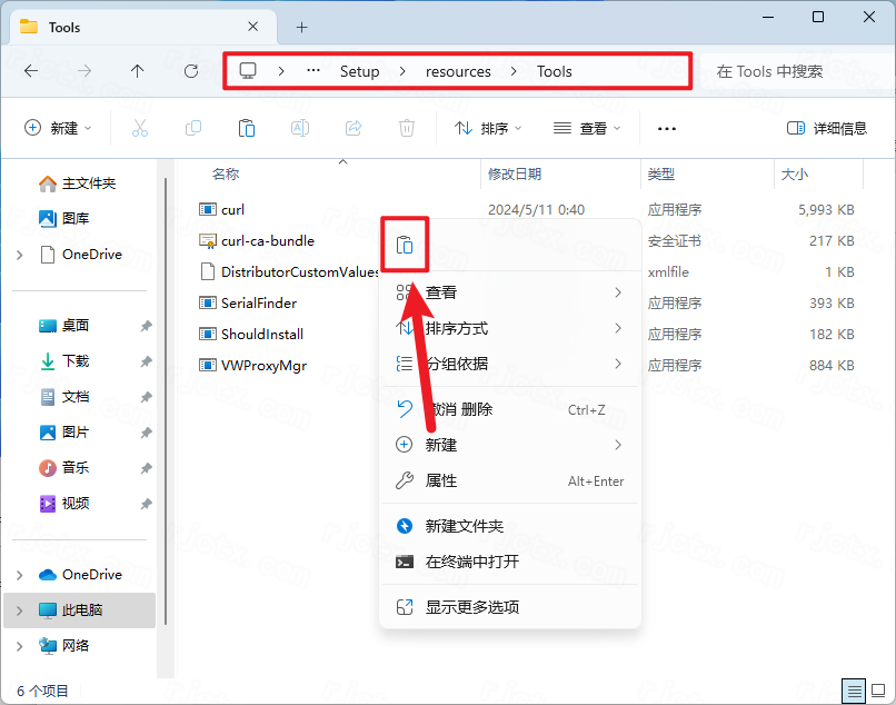 10.打开安装包路径:Vectorworks 2024/Setup/resoures/Tools,再右键文件夹的空白处,点击【粘贴按钮】