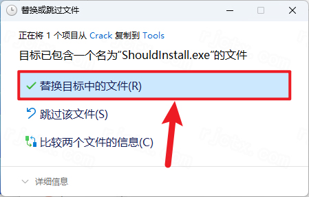 11.点击【替换目标中的文件】