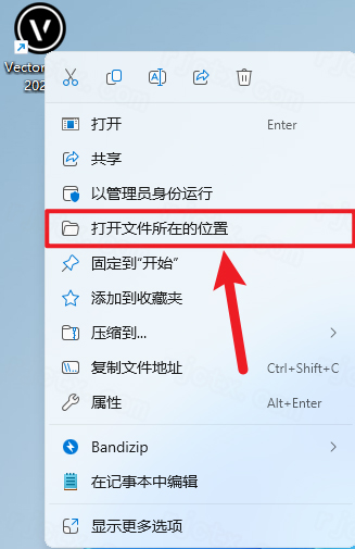 23.回到桌面,右键桌面上的【Vectorworks 2024软件图标】,点击【打开文件所在的位置】