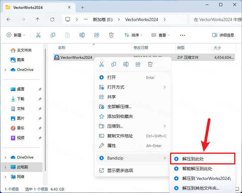 1.下载完成后,鼠标右击【VectorWorks 2024】压缩包,选择【解压至此处】