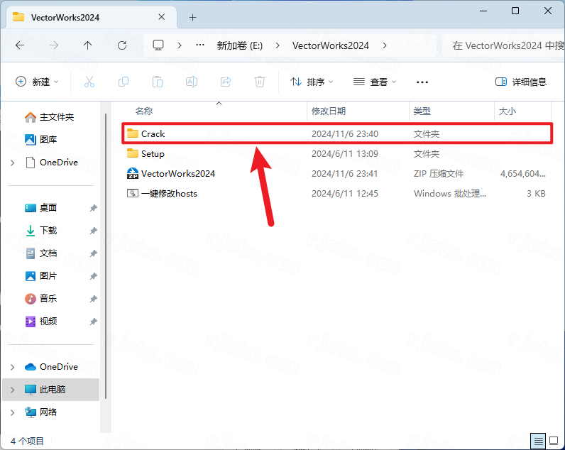 8.回到Vectorworks 2024文件夹,找到【Crack】文件夹,右键【打开】它
