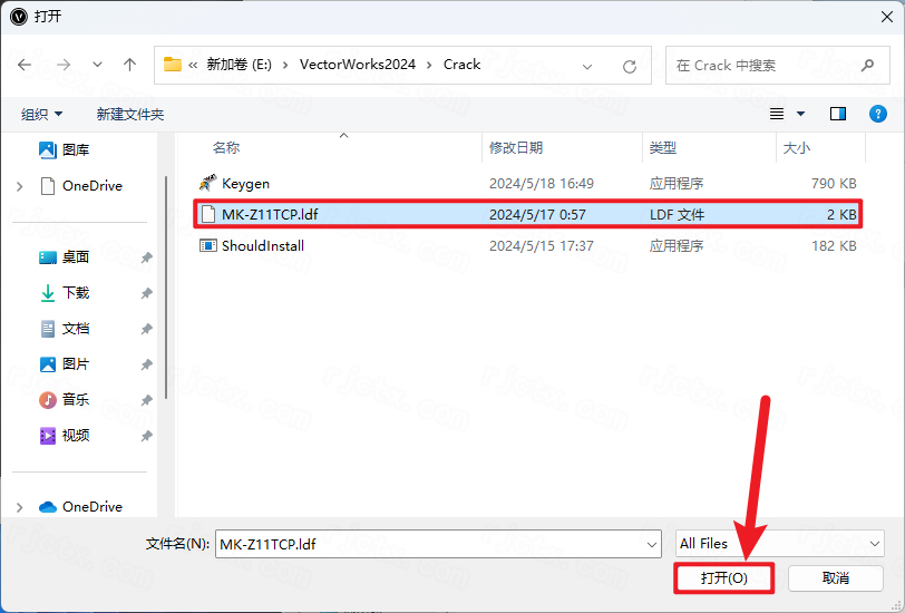 14.找到并选中安装包Crack文件夹下的【MK-Z11TCP.ldf】文件,再点击【打开】