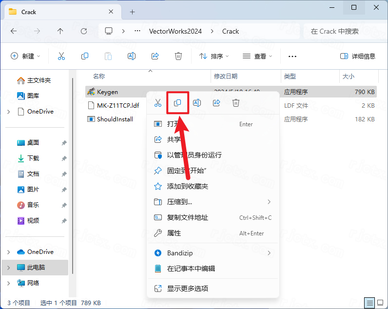 22.回到Crack文件夹,找到【Keygen】程序,右键点击【复制按钮】