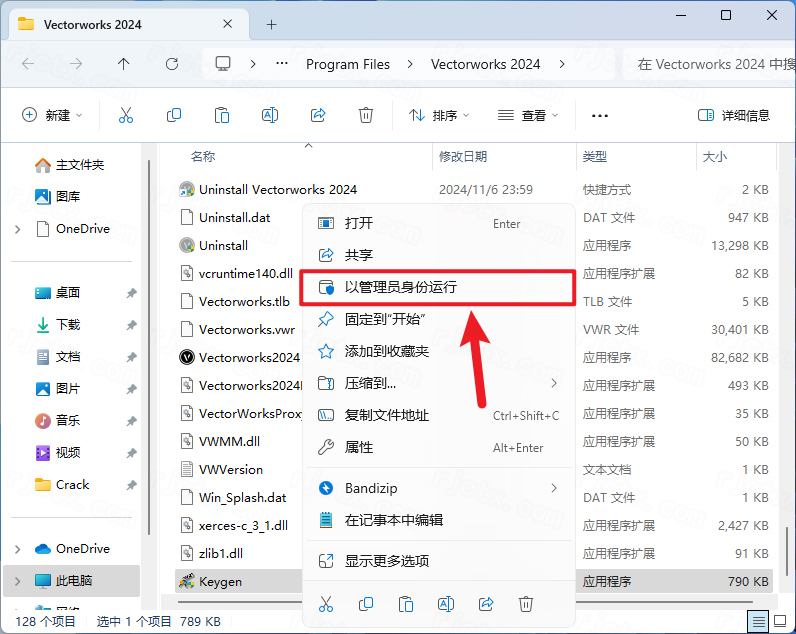 25.找到粘贴的【Keygen】程序,右键选择【以管理员身份运行】它