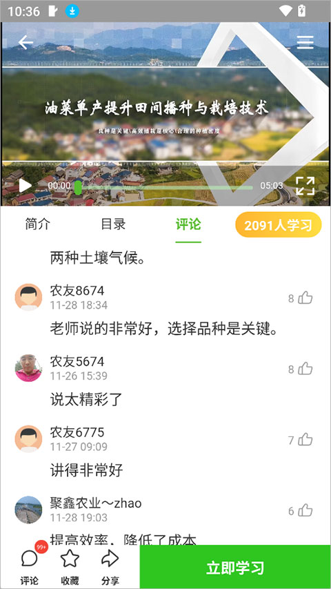 2、学习时可以参与评论,进行分享