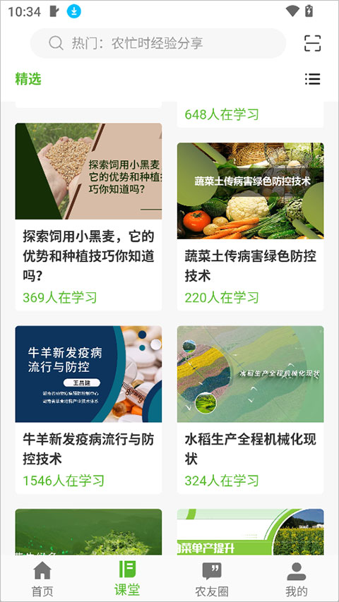 1、打开登录app就可以在课堂界面中打开冀农云学堂,进行相关农业技能的学习