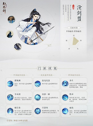 琉璃会的两个流派1个物理输出 1个团队辅助。物理输出以群攻为主,配合仅次于沧剑盟的初始物攻,还是能够打出很高的伤害的,有个技能秒5,不过下回合禁锢状态,不能使用技能。平时日常还行,高难度活动输出位竞争较大。团队辅助以减伤减防为主,想要打出最大伤害上这个流派就要带沧剑,物攻的琉璃和物攻的龙武辅助好他们。有个技能双隐身,可以保关键位置。