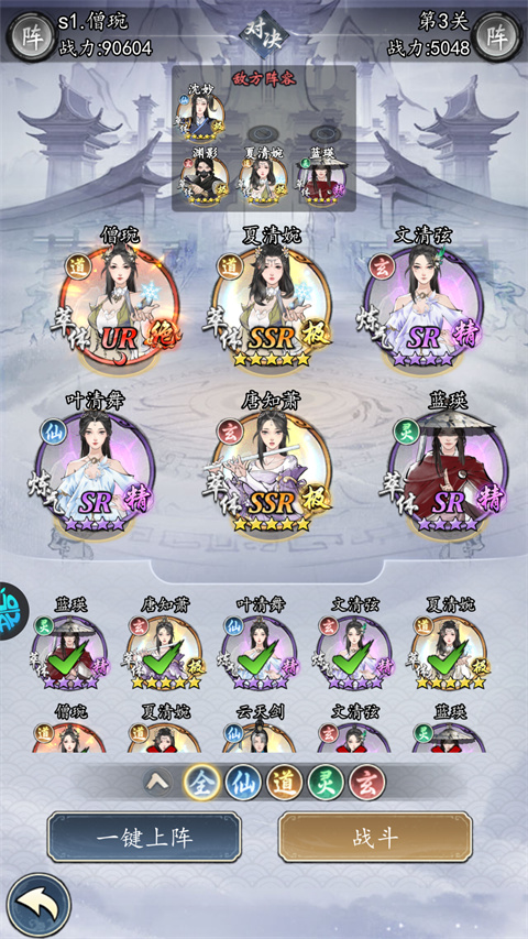 Tips:主阵容可以选择重点培养尊品仙众的同阵营仙众,可以激活阵势,增加百分比的生命和攻击,可以省去不少搭配换阵的功夫。