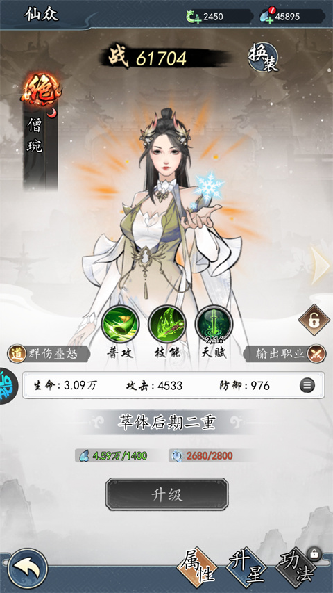 2、使用游戏内各种资源,可仙众进行升级、突破、功法佩戴等操作,提升其战力。