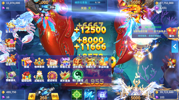 华丽视觉升级:全新大厅皮肤,不断变幻的海底场景,花样鱼群与多种BOSS。
