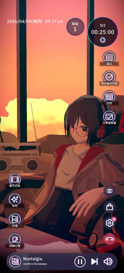 原创乐曲与环境音:内置实力派音乐艺术家创作的原创Lo-Fi乐曲,支持自由调配雨声、风声、咖啡馆背景音等环境音,打造个性化工作氛围。