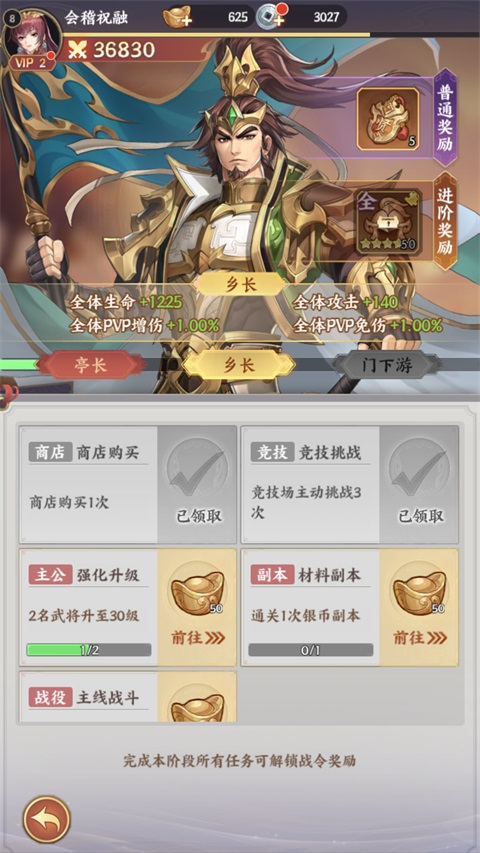 完成招募、武将升级、主线通关等日常任务可领取元宝等奖励,进阶战令还能解锁更多稀有道具,是稳定获取资源的重要渠道。
