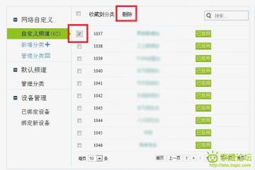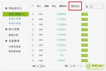 ③  你要全部删除当前显示页的节目源,按顶部的框进行全选,然后点删除。