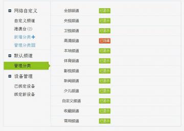 5、默认频道管理,可以隐藏或者显示已有频道分类