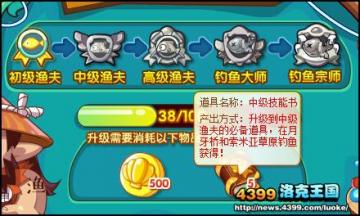 当我们初级渔夫的技能熟练度到达100,我们就需要消耗500个洛克贝和5本中级技能书来让我们升级为中级渔夫哦!