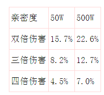 从上表中,可以很明显看出,500W亲密下,明王发动多倍次数伤害的概率远远高于50W亲密。特别是四倍伤害,提高了将近2.5%。别小看这2.5%幅度的提升,说不定。就被这3%几率。成功一掌劈死对面血鬼,赢得PK战的胜利。