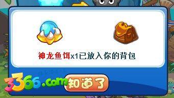 经过艰难地比拼,终于得到了神龙鱼饵,拿到鱼饵就快点在钓鱼岛这里的鱼塘钓鱼吧,可以钓到小青龙哦。