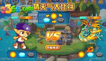 然后小洛克脚下踩着的那个框框就是我们要选择的了,点击图案选择你要猜的天气,赢了的话,神圣青龙就会掉血了哦。