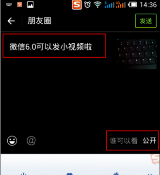 5、8秒短视频拍摄完成后,可以在视频左边“输入分享内容”或者选择“谁可以看”