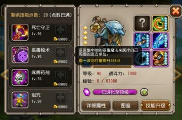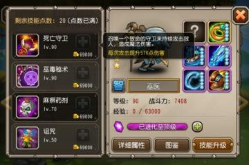 1、死亡守卫:召唤一个致命的守卫来持续攻击敌人,造成魔法伤害。小编用手中的2星巫医做了一个简单的测试,死亡守卫持续攻击的波次大约在8波左右,期间巫医会持续释放,被控制技能打断。由于巫医的站位非常出色,如果残局开大打出伤害或者2次开大,对于中排低魔抗的美杜莎、月骑、白虎等英雄的伤害还是很可观的,具备完成收割的能力。