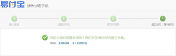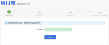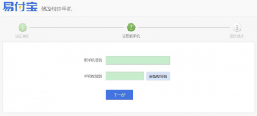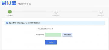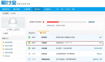 第一步:登录易付宝,进入安全中心,点击绑定手机的修改按钮