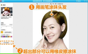 3、实行染发处置惩罚后,难免会有一些涂出的边缘,这时候,我们可以选择"橡皮擦"功能,擦去没涂沫好的局部