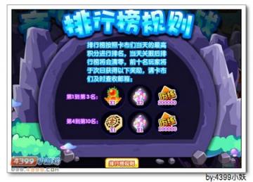“排行榜规则”,排行榜按照卡布当天最高积分进行排名。当天关服后排行榜将会清零,前十名玩家将于次日获得以下奖励,请卡布们及时查收邮箱。