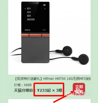 8、我们会看到目前分期购买的产品下面都会说的是分期多少,我们看完以后,可以点击打开看一下具体的情况。