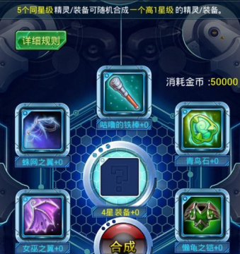 3星合成4星需要5万金币;5个三星装备或者精灵