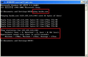 3.重新设置路由器,查看电脑lsp、DNS设置是否正确,最后在ping下网络,看连接是否正常。点击“开始”,“运行”,输入“cmd”回车,打开命令行后输入“ping baidu.com”,看下延时是否在正常范围。