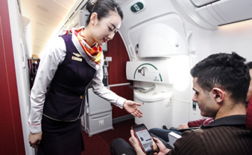 不过需要注意的是,由于国内法律规定,飞机上严禁开启手机,因此乘客目前可以使用平板电脑或笔记本电脑连接Wi-Fi进入喜乐航空中商城购物,还不能像在芬兰航空飞机接入支付宝上那样,直接打开手机用支付宝扫码付款。