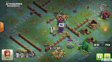 1、分两路进攻,大本那边王爆本,几个野蛮人清下外围防止王跑偏
