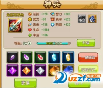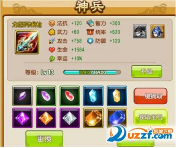 武将装备特定的神兵,可激活神兵情缘,会额外获得属性增加。