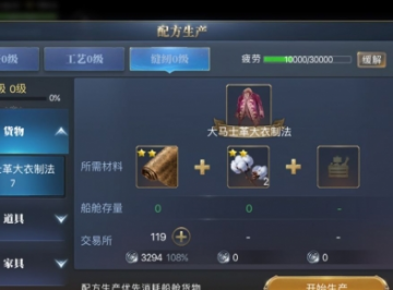 1、生产时会消耗船舱和交易所应对材料数量,以及购买所需的航海币。