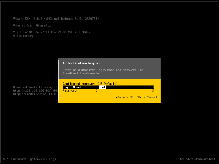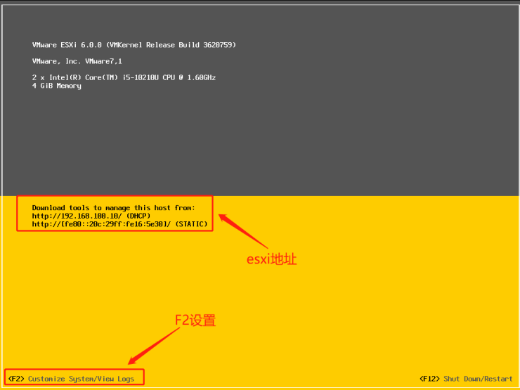 11、VMware ESXI成功启动后,显示其控制台,如下图所示。
