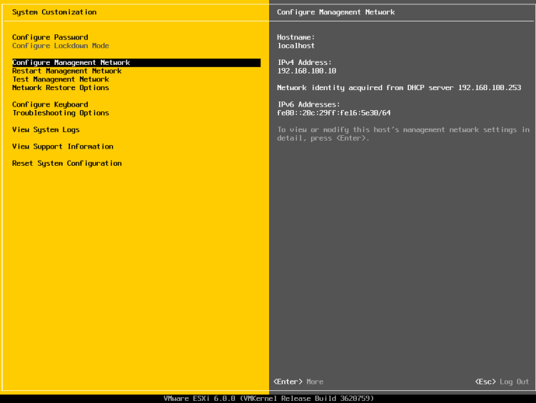 手动设置静态IP(DCUI)