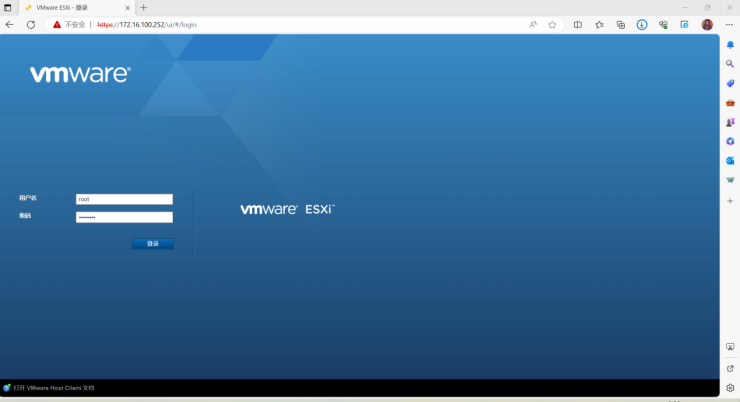 17、通过WEB页面访问VMware ESXi,打开电脑浏览器,输入设备IP地址“https://x.x.x.x”回车即可访问WEB页面。选择“Open the VMware Host Client”选项进入WEB登陆界面。如下图所示