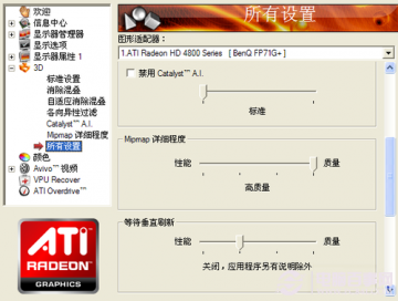 A卡的操作与N卡相似,同样是在控制中心中关闭垂直同步,不过A卡的叫法是“等待垂直刷新”,将指针拨到最左边的永久关闭就可以了。