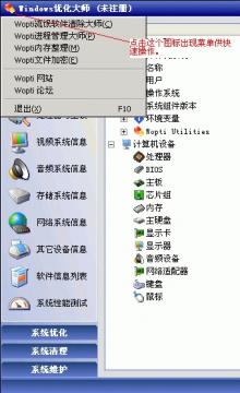 技巧3、进入Windows优化大师后快速启动Wopti进程管理大师、Wopti内存整理...以及访问Wopti论坛社区等。