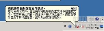 今天一打开电脑就出现了这样的错误“您已使用临时配置文件登录”,如下图所示: