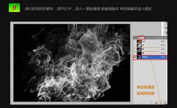 9、打开找好的素材,进入通道面板,把绿通道复制一层,然后载入选区。