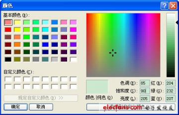 3、再打开右边对应的“颜色”列表,选择其中的“其他”一项,在打开的对话框里,把“色调”的参数设置为85,把“饱和度”参数设置为90,把“亮度”参数设置为205。再点击“确定”退出设置。