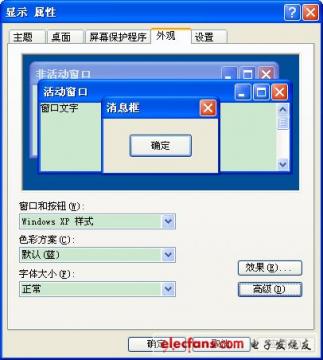 1、在桌面上点击鼠标右键,依次点击“属性”、“外观”、“高级”按钮。