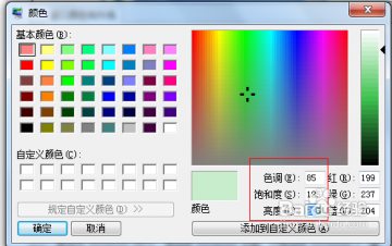 另外,ARGB(255, ??, ??, ??) 后面的??指的是RGB颜色哦,不是(“色调”85,“饱和度”90,“亮度”205),而是其对应的(红 204,绿 232,蓝 207)