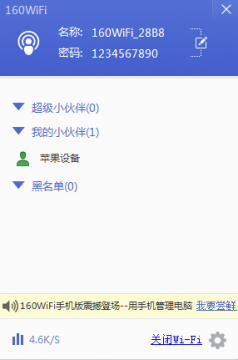 登陆成功再开启160WiFi,尝试手机连接即可。