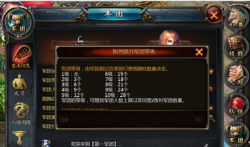 根据职位可以得到不同的战斗力分享:职位 分享比例  军团长 100% 副军团长 90% 军团长伴侣 90% 元老 80% 议员 70% 指挥官 50% 副军团长伴侣 50% 军团长伴侣助手 50% 副军团长的助手 50% 执行官 30% 元老伴侣 30% 议员伴侣 30% 元老助手 30% 议员助手 30% 精英团员 20% 指挥官伴侣 15% 资深团员 15% 团员 10% 元老以上职位可招收新成员。